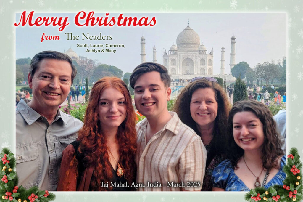 It was another busy travel year for Scott and Laurie, visiting 11 countries in 2025. In March, the whole family traveled to visit India. We spent 6 days in the “Golden Triangle” area — New Delhi, Jaipur and Agra (Taj Mahal). Then we flew to the city of Surat for another 4 days, where Ashlyn spent a year as a Rotary Exchange Student in 2018-19. We thoroughly enjoyed the chaotic beauty of India and had a great time meeting Ashlyn’s host families in Surat. As a bonus, while in Surat, we were able to spend time with Simran, the exchange student from India that lived with us in 2016-17 — we were even able to meet her mom and dad!